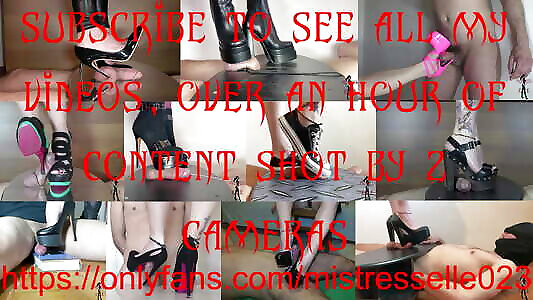01:19Mistress Elle in platform chunky perversions www beeg18 com heels boots stomping the cock on table