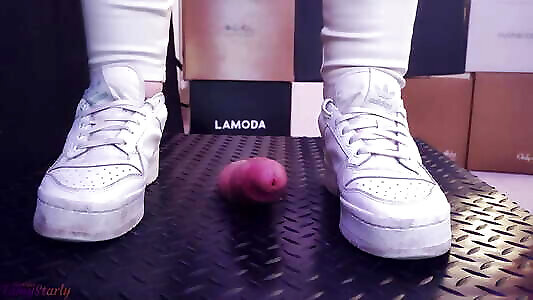 01:21Shuffle Girl Cock Crush in White Platform Sneakers - Shoejob, Trampling, Sneakers, White Puma